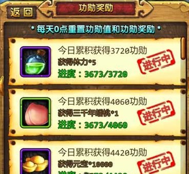 参与挑战魔神可以获得功勋值,功勋值达到一定的数量可以兑换奖励。其中有奖励体力5点。