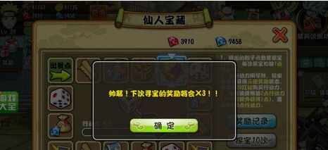 格斗火影游戏中的仙人宝藏就类似大富翁一样,玩家只要摇动骰子移动棋子,当棋子停下来的格子内,格子内的所有宝藏都归玩家所有,但是还有几种情况玩家可以免消耗体力或是获得3倍奖励的情况,接下来小编为玩家们详细介绍一下吧。