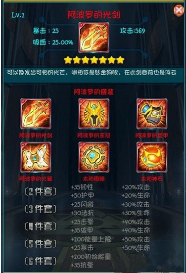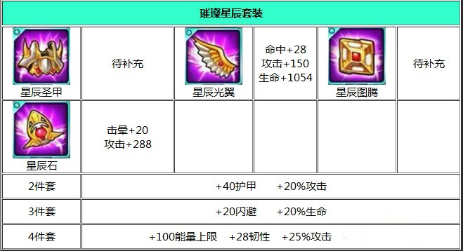 【5件套】:+100初始能量 +25%攻击 +20闪避 +25%生命