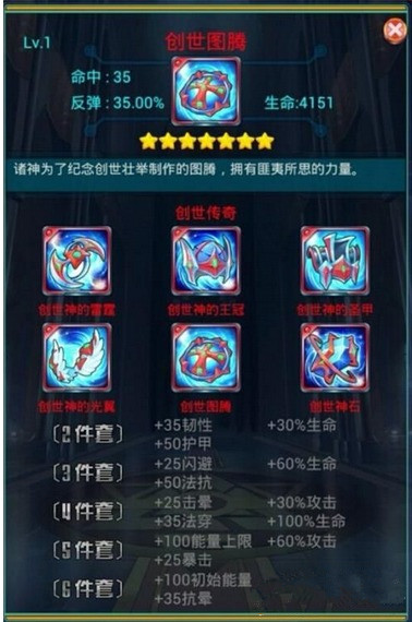 【6件套】:+100能量上限 +25%攻击 +28%反弹 +25%生命