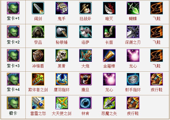 优点:签到送远征兑换,五星快,吸血高攻速快,紫四以后大幅度增加了血量和吸血,并且射手戒指补足了命中,在紫四阶段接近完美。吸血等级大幅度提升以后能很好的压制对面多T和法系,残局王之一,竞技场经常看到巨魔残局砍死白虎小黑。敌法天敌之一。团本利器小怪和boss战均有良好表现。