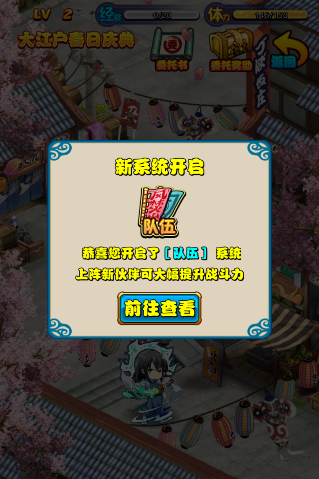 在《银魂》大江户的春日盛典中顺利取得首胜之后,我们的等级也提升到了2级。这时候,队伍系统也正式开启,对于势如破竹的我们来说,更是如虎添翼。