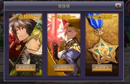 在竞技场开启的同时,荣誉商城也会随之开启。点击竞技场按钮,可选择进入到对应的荣誉商城界面。