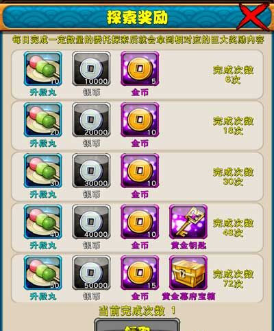 玩家出了触发事件获得的奖励之外,还可以根据每日探索次数的累计领取固定的探索奖励。