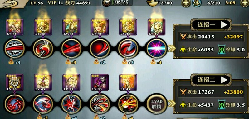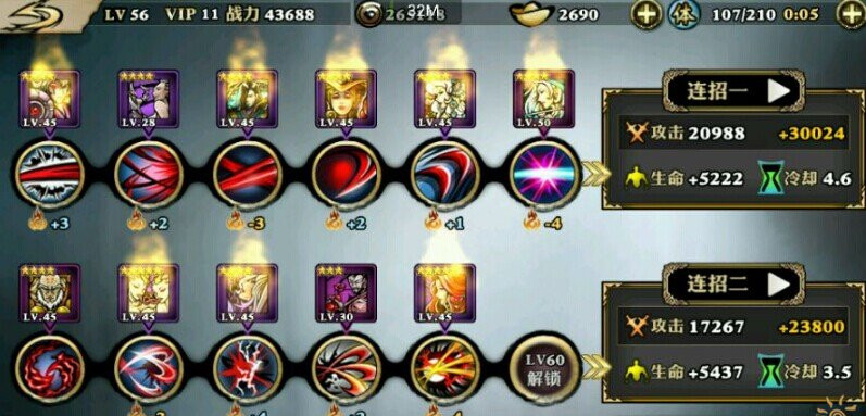 关于有些玩家提出的没有心法导致杀意不够的问题,我重新组了一套平民玩家可以用的招链。去除了招链1的两本大修罗,换成了冰火两重天和机关卸衣术。唯一的一本五星心法时间凝固可以用彩券换,相信大家都能组得起。