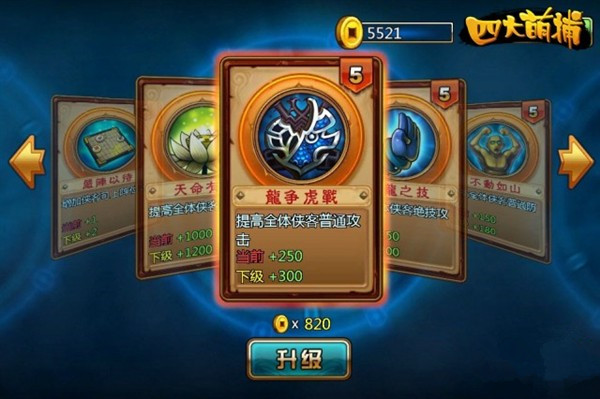 不是所有人都是如春哥一般的,能够“满血、满蓝、满极品属性”的。所以在游戏中设置了神侯府提供玩家提升自身属性,在神侯府中玩家可以用金币来学习各大技能(技能包括:押运基础铜钱收益、押运基础元气收益、家丁位置、家丁元气收益、铜人堂元气收益、侠客上阵位置、生命值、普通攻击、绝技攻击、普通防御力、绝技防御、先攻值),技能等级越高所加的属性越高。