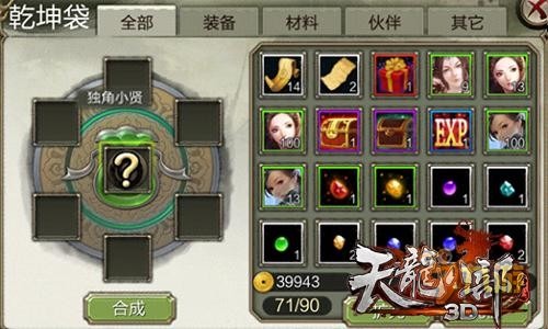 《天龙八部3D》游戏中乾坤袋就是屌丝逆袭高富帅必须会的功能了。乾坤袋里可以合成宝石、置换宝石、合成美人以及置换美人碎片。