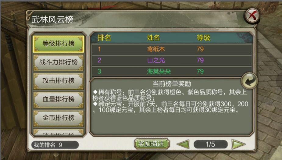 目前《天龙八部3D》“风云榜”有元宝奖励的榜单有4种,分别是等级排行榜、战斗力排行榜、门派大弟子排行榜、勤奋排行榜。其中首周有效的只有等级排行榜以及战斗力排行榜。而门派大弟子排行榜和勤奋排行榜则一直有效。战斗力排行榜是土豪的天下,我们非大R玩家就不要考虑了,勤奋排行榜就是看在线时间,今天主要解析等级排行榜。
