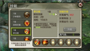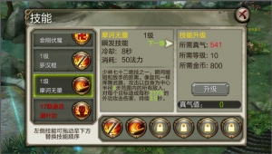 以上8个技能升级的时候优先升级的有摩诃无量、狮吼功、韦陀杵,这三个技能也是平常刷怪PK常用到的