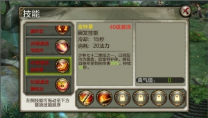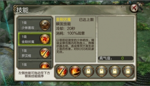 金钟罩:少林七十二绝技之一,以丹田之气发出狮吼震慑敌人胆魄。开启盾墙,所有敌人对自身造成的伤害减免20%,持续10秒。