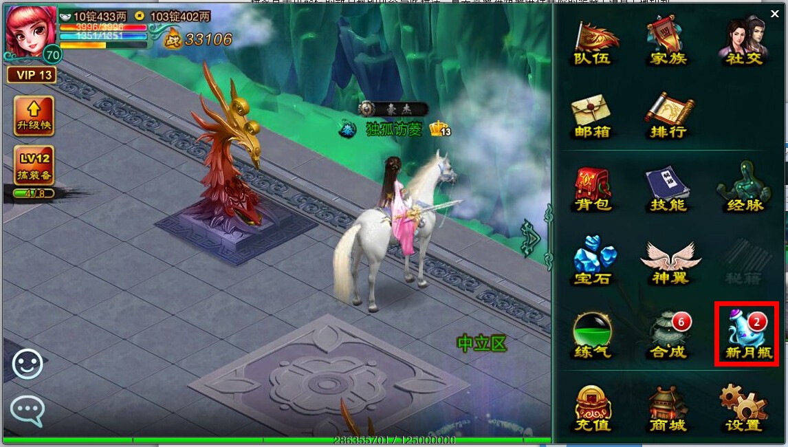 新月瓶玩法是《征途口袋版》中重要的装备(道具)回收利用的玩法,简单理解就是合成的玩法,可以将5件装备(道具)合成一个,并且被合成的装备(道具)会提升装备品阶(改变颜色)。