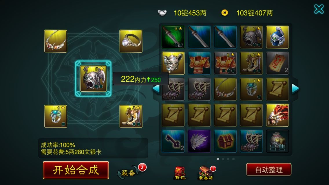备注:如果被合成的同品阶装备(道具)不满4个,则不能进行合成。合成需要消耗一定的游戏币