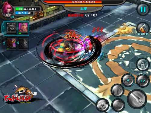 心魔BOSS太极熊猫,与游戏角色中的熊猫拥有相同的技能,并且拥有的技能也与熊猫几乎相同。这表明了这个BOSS攻击时会有僵直效果,一旦被连上就可能会一直躺地哦。对付这个BOSS我们就需要从他的防御条下手。事实怎么BOSS还是无法做到十全十美。他的防御条非常薄弱。只要几次普通攻击就可以破防。我们需要准备一些武神。
