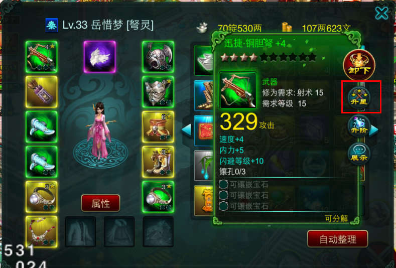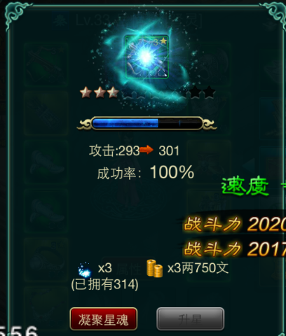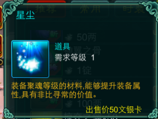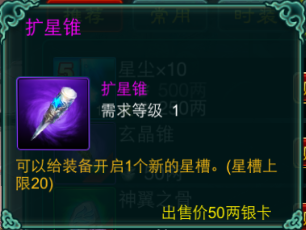 用法:当前等级星槽进度条100%后,用来提升装备的星级;