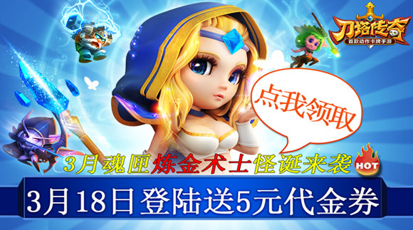 即日起(18日23:59分前)登录游戏的用户都可以领取一张5元代金券,可直接在充值时顶替充值金额哦!