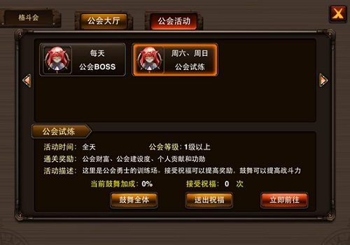 除了技能的改动。1.8版的《格斗之皇》还增加了互动玩法,让玩家之间更好的拉近彼此的距离,培养更多的基友情。在公会中,新增了公会试练玩法,击杀怪物获得公会奖励。公会小伙伴之间可以互相祝福,获得祝福的玩家可以获得奖励加成。对全体公会成员进行鼓舞,能提升小伙伴们在公会试练中的战斗力,一起战个痛快!
