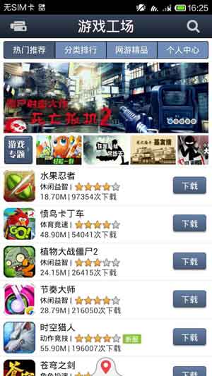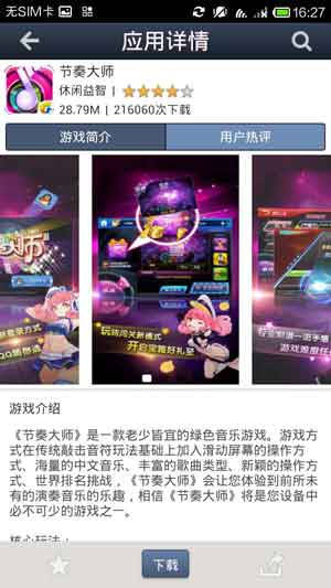 游戏详情页:包含游戏分类、评分、客户端大小、游戏截图、游戏介绍等详细信息