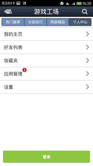 个人中心:可查看个人主页、好友列表、收藏的游戏、对游戏进行管理及其他功能设置