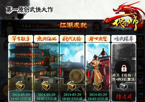 2、增添两章新主线,通关“沧海一笑*六”可获“非同反响”江湖成就,通关“行侠仗义*二”可获“惊世骇俗”江湖成就。