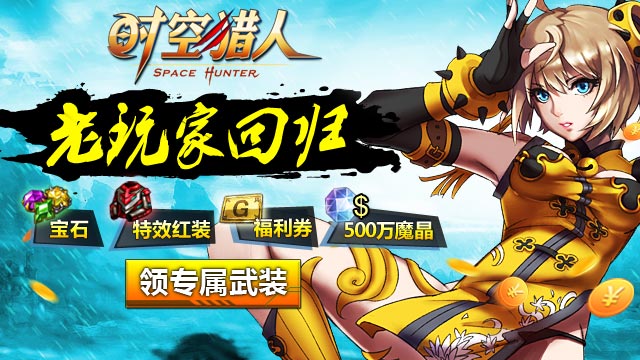 多长时间没有和兄弟一起组队打boss了?《时空猎人》又出新内容了?现在拿极品装备有技巧?马上登录《时空猎人》参与老玩家回归活动,用2014魔晶就可以兑换90级红装、珍稀宝石和巨额魔晶等等奖品,还能享受新游戏内容带来的超强快感!