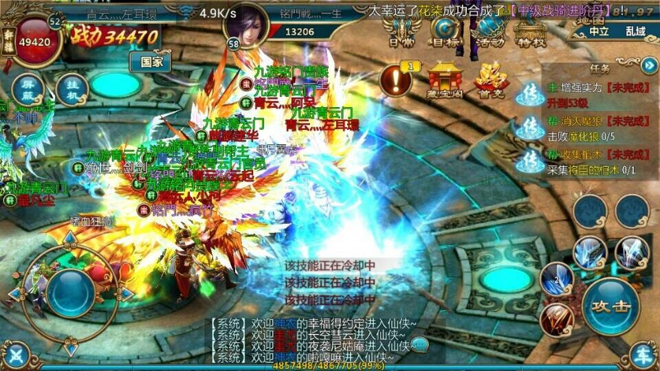 青云灬影子:我祝愿《仙侠》越来越火,越做越好,受到更多的玩家喜爱。我想对仙友说说,这个游戏真心挺耐玩的,适合大众玩家,不管你是土豪还是屌丝都可以玩。只要仙友你自己多多注意一些细节,对于宠物和坐骑进阶,大家不要太心急,俗话说的好,好事多磨。这么华丽的坐骑和宠物肯定要慢慢来,存够足够的数量就可以升阶,你自己用心一点,基本可以玩的了!不懂得友友可以多多看看攻略哦!最后附上青云门的集体照,各位仙友们,欢迎你们来加入青云门,和我们一起走上修仙之路啊!