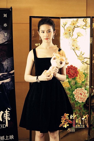 图1:女神刘亦菲与萌宠貔貅合影