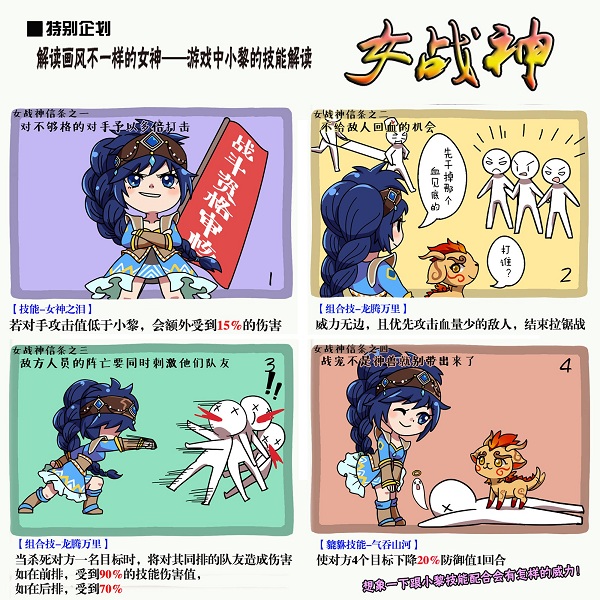 不过,可千万不能只把貔貅当做花瓶式的宠物!不仅它自己是龙生九子之一,游戏中“气吞山河”技能杀伤力不俗。而且,小貔貅还有一位来头更大的小伙伴——小黎。这位受到女神指引前来解救楼兰的神秘少女,不但拥有靓丽的外表,更拥有女战神般强大的战斗实力!同时,小黎和貔貅的合体技“龙腾万里”则堪称战场绞肉机,在攻缘全满,参悟了暴击书籍的情况下,所以有很大概率一举灭掉对方三至四个弟子!