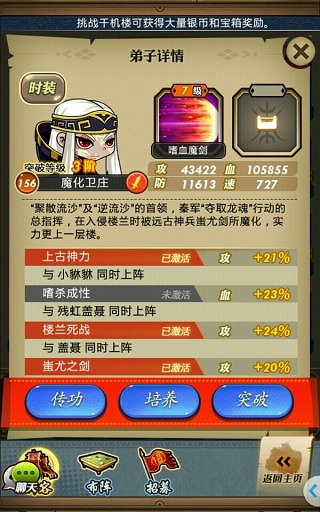 与大电影中的抢眼表现一致,魔化卫庄在《秦时明月》手游2.0中也堪称无人能敌。魔化卫庄拥有游戏推出至今的首个必出技能!该技能优先攻击前排敌人,而且每次攻击后魔化卫庄都将获得5%攻加成,最多可达到20%的提高值!再加上罕见的强攻六缘系统——与貔貅、残红盖聂、师兄盖聂的弟子缘以及三大装备缘,魔化卫庄绝对是当之无愧的《秦时明月》手游2.0攻击力最强弟子!