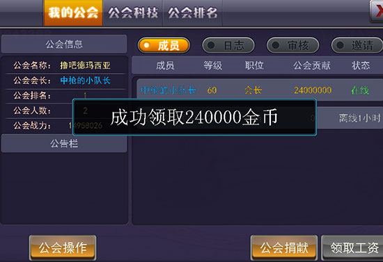 如果你是公会的成员,那么每天可以从公会里领取丰厚的工资。