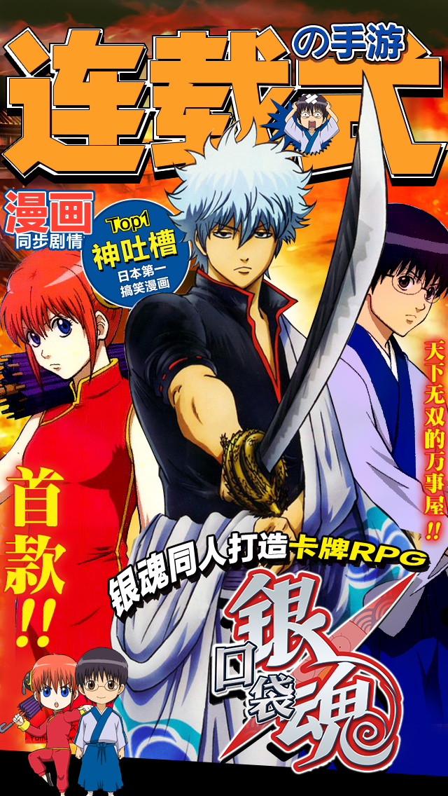 《银魂》出手游了!今日,《银魂》同人团队打造的卡牌RPG,首款连载式手游《口袋银魂》正式对外曝光。《口袋银魂》原汁原味呈现漫画剧情、并随漫画动态更新,银时、神乐等300名漫画角色全收录。这也是首款《银魂》改编手游!