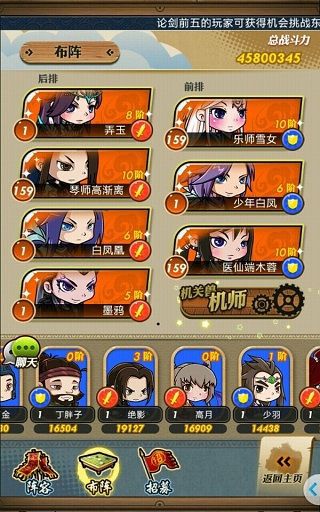 墨家体系对空山鸟语体系的补强阵容随之浮出水面。前排医仙、少白、乐师为抵挡,后排弄玉、白凤、墨鸦、琴高为输出。那么接下来需要做的就是通过板凳围绕这个阵容补强。