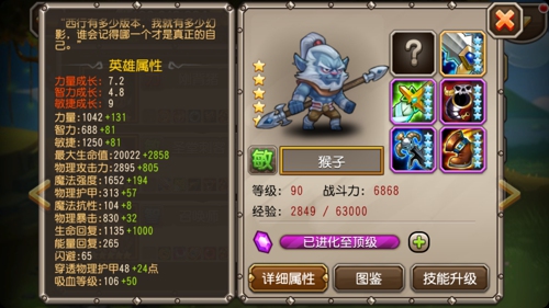 总体来说,猴子在前中后期都是一个很强力英雄。多重分身对敌方强大的干扰作用,再配上较高的输出阵容,让它无论身处在物理攻击系阵型,还是魔法攻击系阵型,均可发挥出令人振奋的战斗效果,在远征和竞技场中定会有突出的表现!