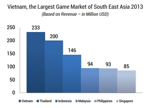 越南为2013年东南亚最大游戏市场(根据收入-百万美元)