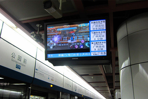 手游线下推广在现今的中国手游市场中已经蔚然成风,许多游戏厂商都有自己的一套办法。而益玩游戏在手游的线下推广上,似乎是跟地铁杠上了。今年5月份,益玩游戏的线下推广首次尝试为3D ARPG手游《暗黑战神》投放了地铁车体广告,并且地铁站台铺设大屏灯箱广告宣传画。在上周,益玩游戏再有大手笔推广投入,与广州地铁合作,在广州现运营九条地铁线路全线地铁车厢内投放冒险PK手游《格斗冒险岛》的宣传视频。