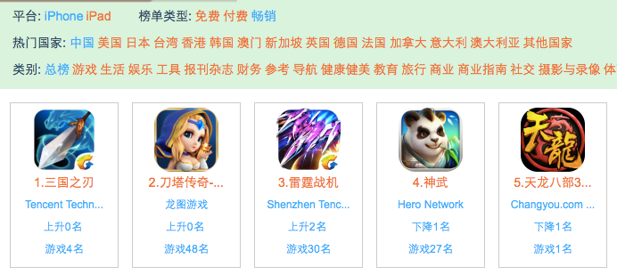10月31日12时,App Store iPhone畅销榜前5位,新晋的3款游戏《三国之刃》、《神武》和《天龙八部3D》,一款比一款重度。