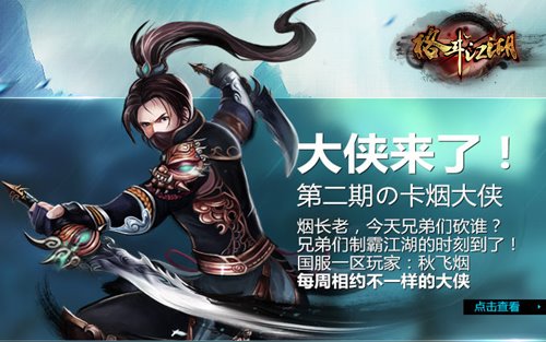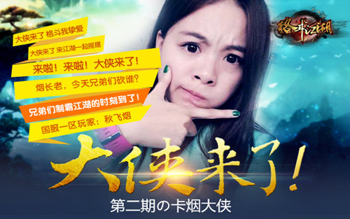 《格斗江湖》第二期大侠来了登场了!还记得我们的活动规则吗?“大侠来了”活动中,每期的大侠都是由上一期的大侠推荐产生的,而每位被推荐的大侠均能获得丰厚的福利奖励,如果想当一回大侠,一定要紧紧留意我们的大侠是何许人也,或许这期你的基友登场了,或许下一期你就是大侠了!而这期,我们就来看看女汉子--卡烟大侠吧!