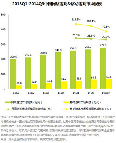 2014年可以称为是手游的“井喷之年”,手游产品层出不穷,而手游厂商以及渠道供应商也如过江之鲫数不胜数。益玩数据显示,2014Q3中国网络游戏市场规模达到277.6亿,其中移动游戏市场规模69.8亿,同比增长72.8%,增长形势基本趋于稳定,同时,移动游戏市场中,动作类、角色扮演类、即时战略类为代表的重度化移动游戏数量比例明显上升,不难看出,重度化已成手游发展的必然趋势。