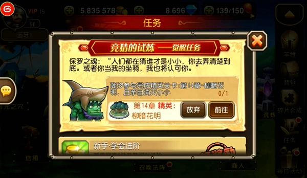 潮汐参与完成精英关卡:第14章-柳暗花明,且亲自消灭小小。