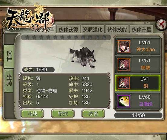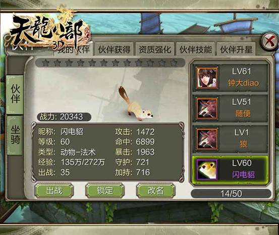 在《天龙八部3D》中开一个只属于自己的动物园是,狮子的霸气,老虎的暴力,闪电貂的矫捷,想要“动物园”中的动物都有着自己的血性么?《天龙八部3D》会满足玩家对于野兽的期盼。