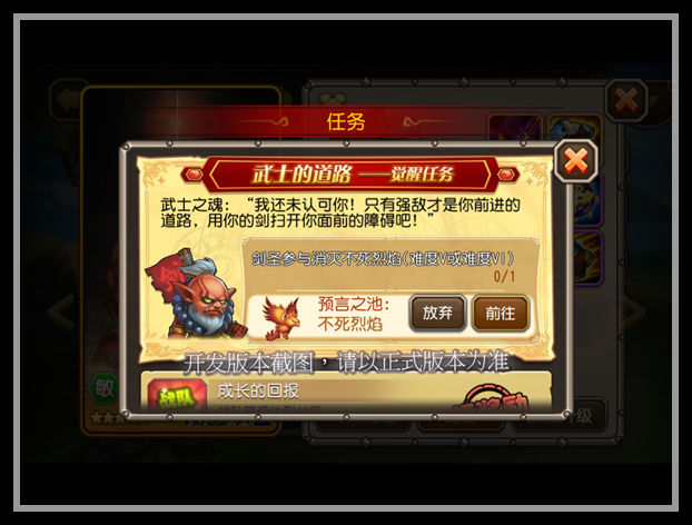 觉醒任务第二环:剑圣参与消灭“预言之池-不死烈焰”难度5或难度6,1次