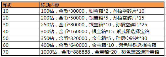 活动期间,游戏角色达到指定等级,即可领取丰厚的升级大礼包