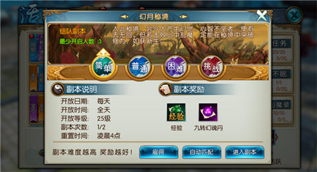 玩家达到副本参与条件后,点击活动按钮即可参与幻月秘境副本。